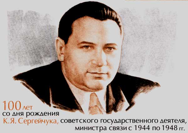 - 100 years from birthday of K.Y.Sergeychuk, the soviet state figure, minister of communication from 1944 to 1948