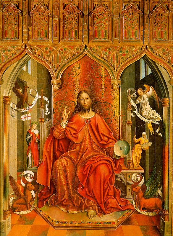 - Jesus between the Virgin and St Joseph offering His passion to God