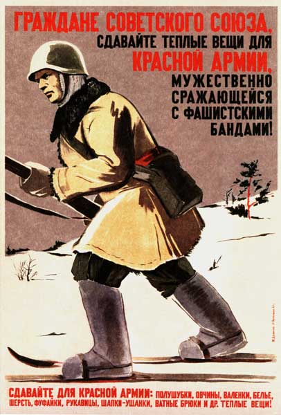 Граждане Советского Союза, сдавайте тёплые вещи для Красной Армии, мужественно сражающейся с фашистскими бандами! {pt1063}