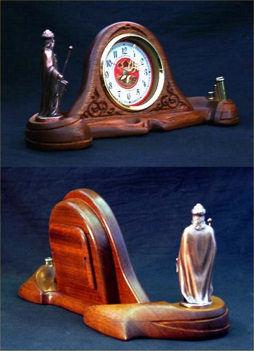 - Красное дерево, резьба; олово, литьё, чеканка, гравировка, меднение; латунные трубки.
